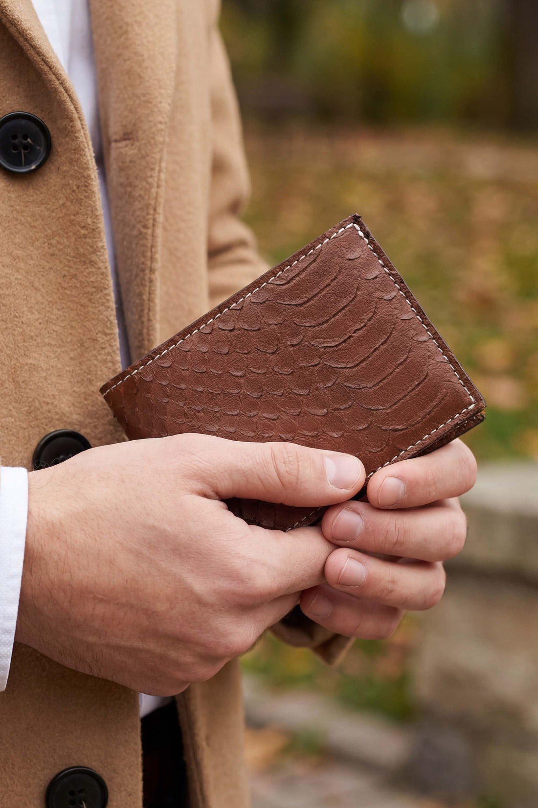 Reflecting shades of brown, this note wallet is made of snake textured leather. It offers...